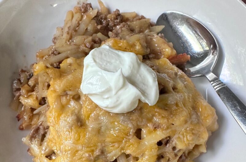 - Serve Taco Hashbrown Beef Bake with salad.